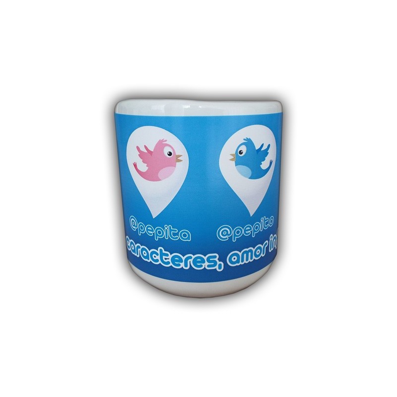 140 caracteres, amor infinito... este mug con oreja en forma de corazón es una pieza única ya que puedes colocar tu @Twitter y el de tu amad@ en él.